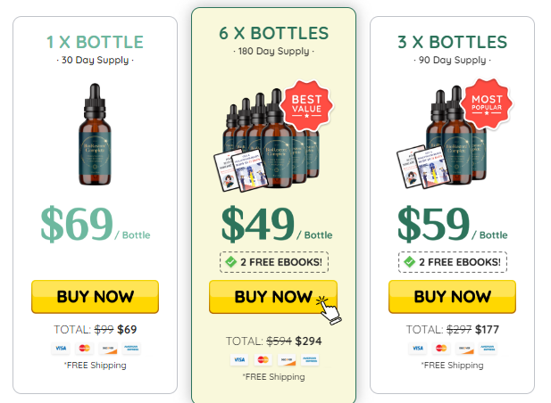 Six bottles of BioRestore Complete for $49 each bottle, ( 180 day supply) ( Free Shipping) 2 Free Ebooks.
