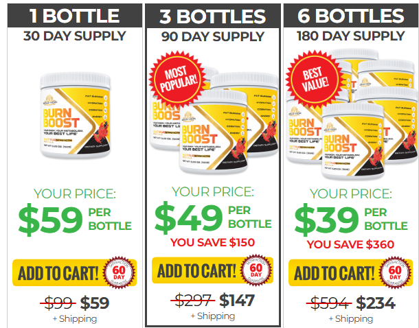 Three bottles of Burn Boost for $147 plus small shipping fee: The normal price is $297 (60 Day Supply)