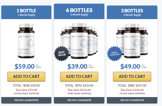 Three bottles of GlucoBerry Supplement for $49, each bottle. Plus small shipping charges ( 90 day supply)