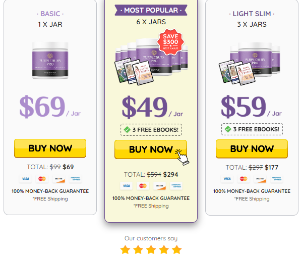 Purple Burn Pro supplement offer three unique packages.