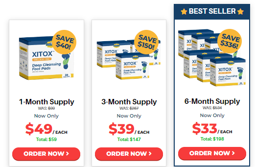 One bottle Xitox Foot pads Supplement for $49, (30 day supply)